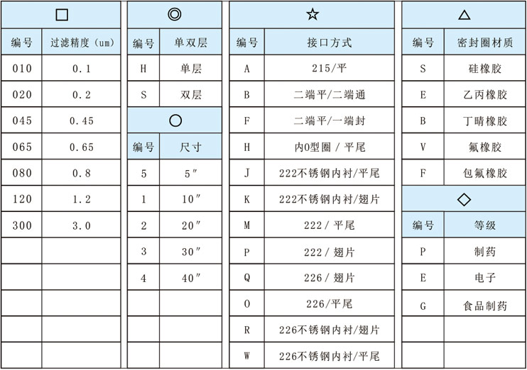 ◇ 过滤精度:0.1、0.2、0.45、0.65、0.8、1.2、3.0(μm)
